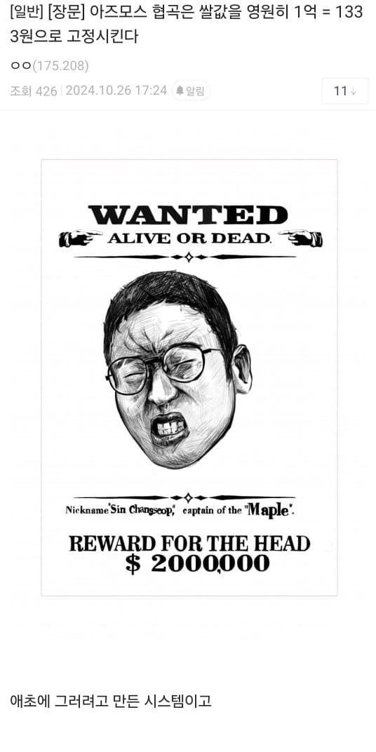 결국 현금 1300원 = 1억 메소라는 단위를 게임사에서 매겨버린 셈이 됨 그리고 기존에 게임머니를 팔던 흔히 말하는 "쌀숭이"들이 팔던 가격은 2600원이였음
