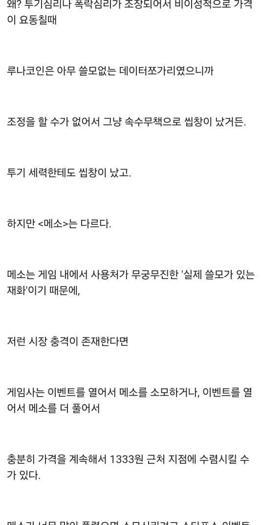 2.그런데 현금 대비 메소가치를 매우 낮게 설정한 덕분에 기존 메소 가치가 폭락해 현금거래 가격과 아이템 가격이 떨어지고 있다.