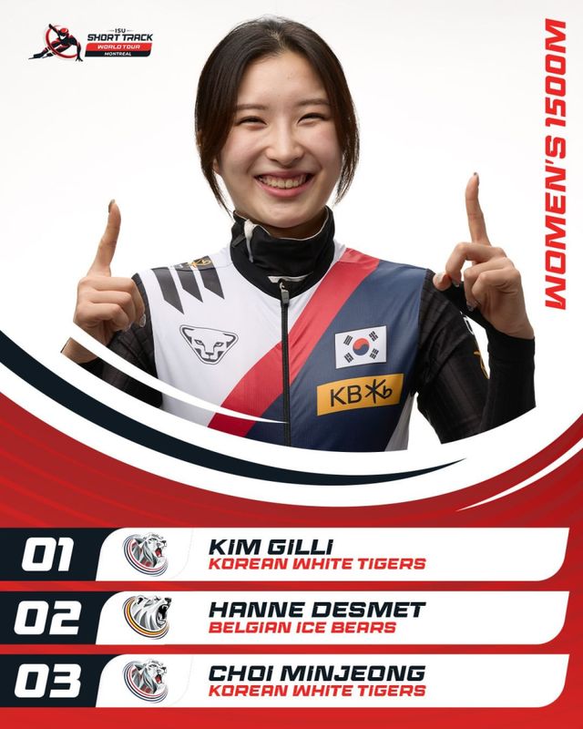 김길리는 지난 시즌 월드투어 종합 1위를 차지하며 한국 여자 선수 최초로 크리스털 글로브를 품은 바 있다. 시즌 첫 월드투어에선 개인전 1500m 금메달 외에도 여자 3000m 계주와 혼성 2000m 계주에서 은메달을 획득했다.