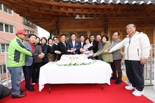 | ▲ 박일하 동작구청장이 한옥카페R1에서 진행된 개소식에서 기념촬영을 하고있다 |