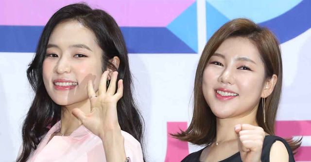 홍자와 송가인이 인천국제공항을 통해 입국해 팬들에게 인사를 하고 있다. / 뉴스1