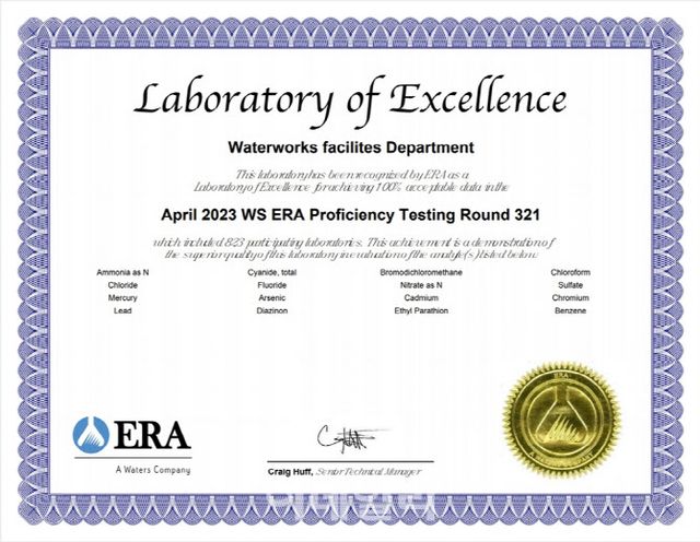 이와 함께 고양시는 지난 2016년부터 8년 연속으로 미국 환경자원협회(ERA) 주관 국제숙련도 평가에서 먹는 물 분야 ‘우수 분석기관(Laboratory of Excellence)’으로 선정되기도 했다.