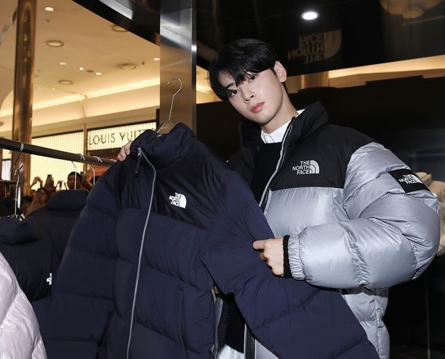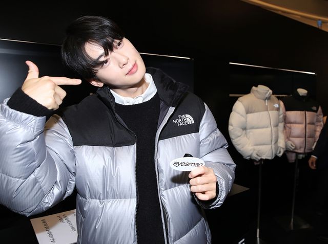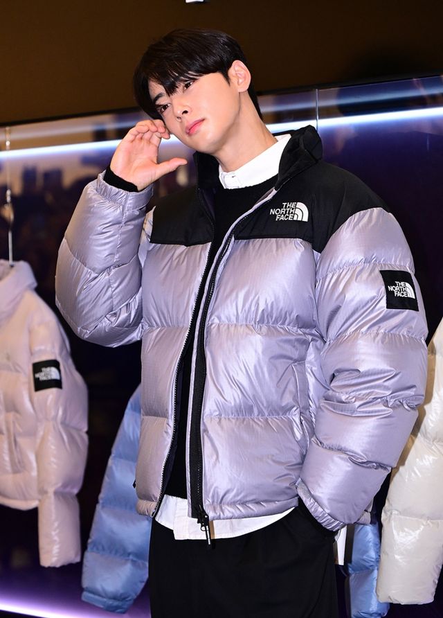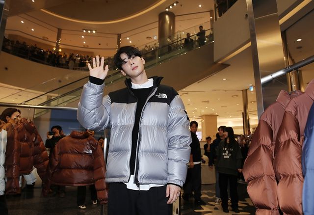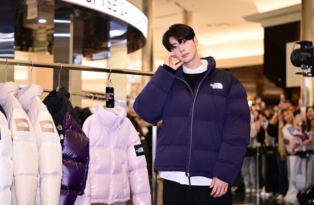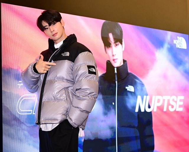 지난 25일 차은우가 신세계백화점 센텀시티점에서 열린 글로벌 아웃도어 브랜드 노스페이스가 ‘눕시 재킷’의 신제품 출시 기념 ‘눕시24(NUPTSE24)’ 팝업스토어에 등장했다.
