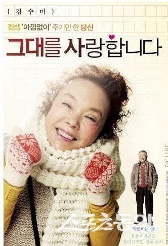 이번 영정사진은 2011년 개봉한 영화 ‘그대를 사랑합니다’ 캐릭터 포스터로, 사진 속 김수미는 목도리에 털장갑을 끼고 ‘볼 빨간 소녀’와 같은 모습을 하고 있다.