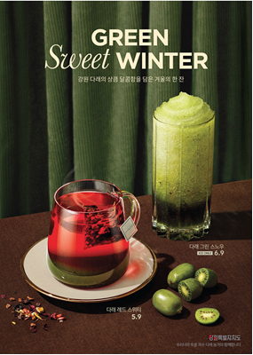 28일부터 구매 가능한 신메뉴는 다래 고유의 달콤한 맛과 크림슨펀치의 상큼함을 조합하고 핫&아이스 두가지 버전으로 출시해 취향에 맞춰 즐길 수 있는 △다래 레드 스위티와 국내산 자연 다래와 얼음만을 사용해 원재료 고유의 맛과 다래의 그린 색상을 강조해 제철 과일의 자연적 요소를 강조한 △그린 윈터 다래 스노우 총 2종이다.
