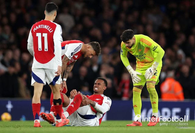 전력이 온전치 않았던 아스널은 천천히 경기를 운영했다. 골키퍼 라야가 시간 지연으로 옐로카드를 받기도 했다. 그런데 또 부상자가 나왔다. 후반 30분 팀버가 불편함을 느꼈고, 루이스 스켈리가 투입됐다.