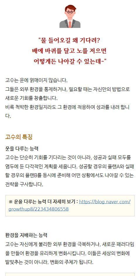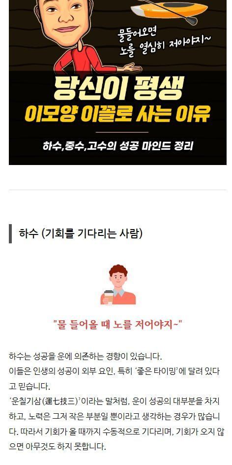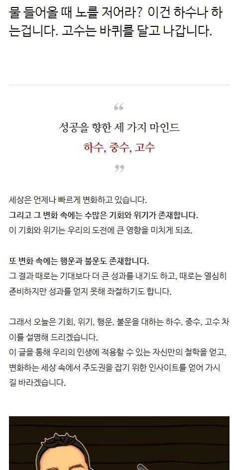 ‘물 들어올 때 노를 저어라’ 이 말에 대한 하수, 중수, 고수의 3가지 해석,,
