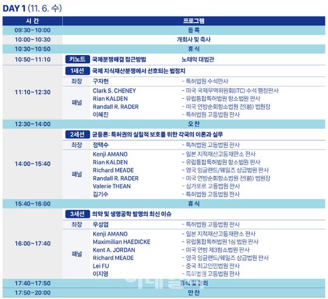 기조 연설에는 노태악 대법관이 ‘국제분쟁해결 접근방법’을 주제로 나선다. 특허법원에서 처리하는 사건의 약 30%가 외국인 당사자가 관련된 사건인 만큼, 국제적 요소가 있는 사건에서 고려해야 할 다양한 요인과 효율적인 접근 방법이 제시될 전망이다.