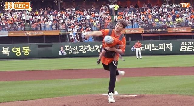 이날 최민환은 아기띠를 이용해 아들 재율 군을 품에 안고 시구를 했다. 맞은 편에 서 있는 율희를 향해 힘껏 공을 던졌고 그 과정에서 재율 군의 목이 꺽이는 모습이 포착된 것. 이에 일각에서는 자칫 위험한 상황으로 이어질 수도 있는 부주의한 행동이었다는 지적이 나오고 있다.