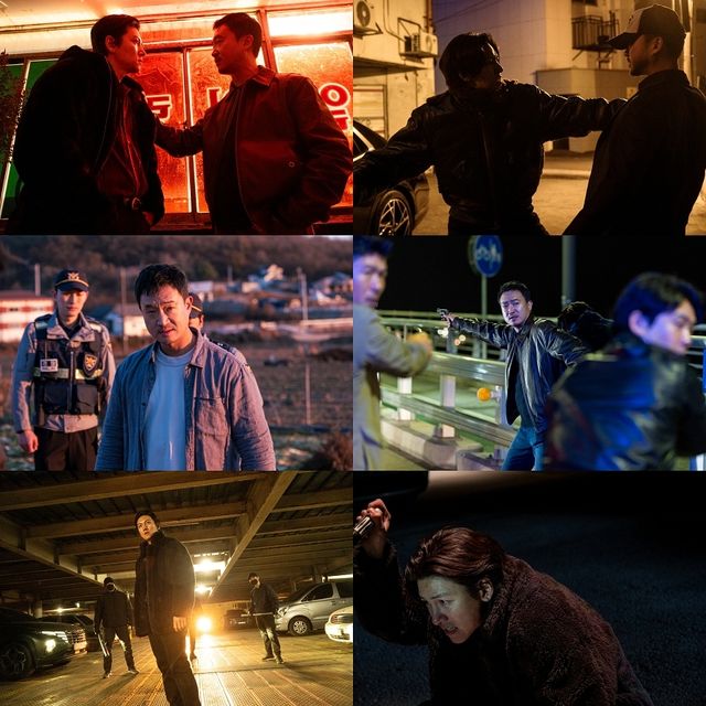 먼저 조우진이 분한 ‘강동우’는 베테랑 형사 답게 급소를 타격해 상대를 단번에 제압하는 묵직하고 시원한 한 방 액션을 예고한다. 복싱과 격투기를 베이스로 탄탄한 기본기를 갖춘 그는 군더더기 없는 움직임의 엘리트 액션으로 시청자들의 시선을 사로잡을 예정이다. 조우진은 “스텝부터 잽, 훅을 날리는 것까지 기본적인 동작들을 몸에 익히려고 노력했다. 이렇게 운동을 많이 한 적은 처음”이라며 캐릭터의 리얼함을 살리기 위해 보이지 않는 곳에서 묵묵히 땀 흘렸던 당시를 회상했다.