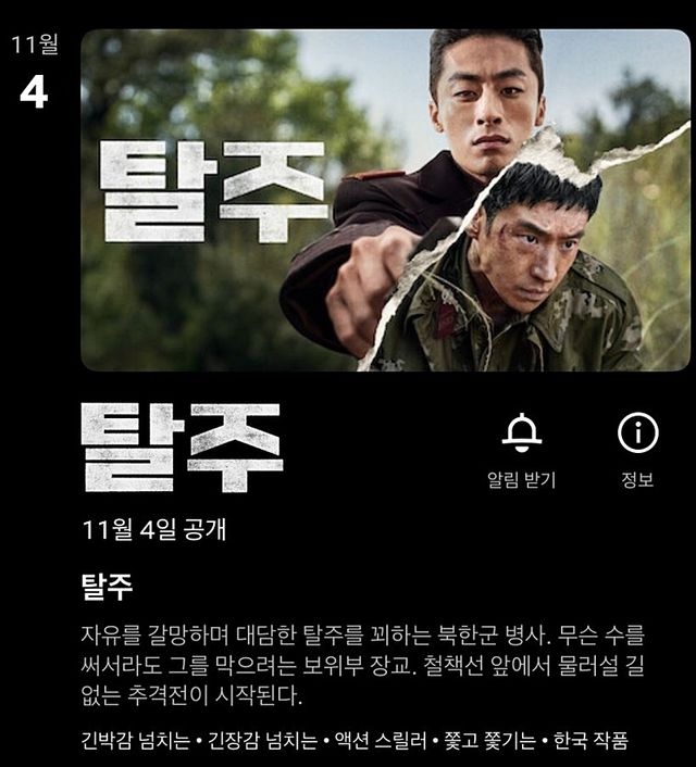 넷플릭스는 최근 영화 '탈주' 공개 날짜를 알렸다. 이 소식은 캡처돼 28일 더쿠 등 주요 커뮤니로도 퍼져 관심을 끌었다.