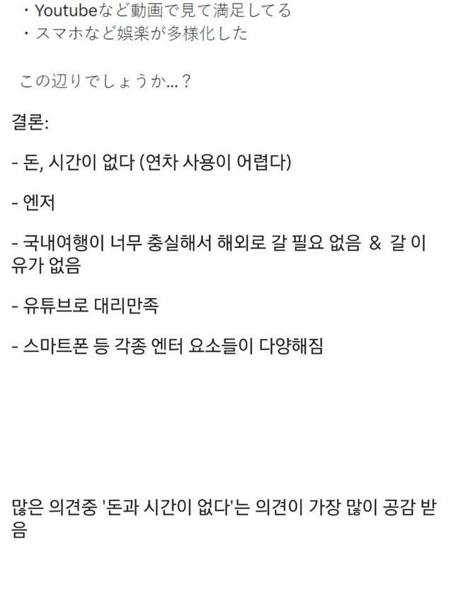 한국은 국내여행하면 바가지로 호구잡이 많이해서 해외 많이 가는듯