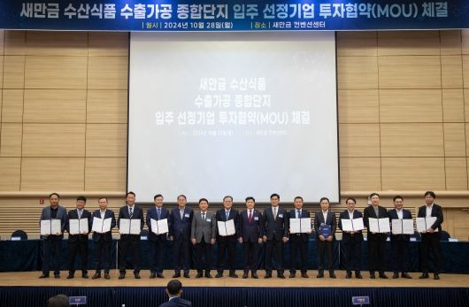 [파이낸셜경제=김예빈 기자] 군산시가 28일, 군산새만금컨벤션센터에서 새만금 2공구 새만금 수산식품 수출가공 종합단지 12개 입주기업과 1700억 규모의 투자 협약(MOU)을 체결했다