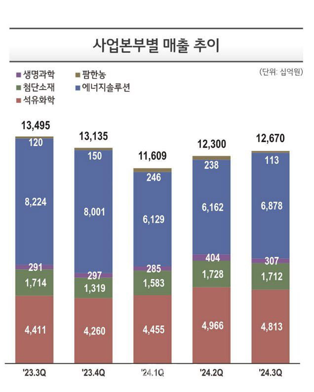 구체적으로 석유화학부문의 실적 부진의 두드러졌다. 원료 가격, 운임 비용의 일시적인 증가와 환율 하락의 영향으로 영업손실 382억원을 기록하며 적자전환했다. 4분기는 원료가 하락에 따른 원가 개선과 신설 공장 가동율의 상승, 구미주 판매 물량 확대로 수익성 개선을 기대하고 있다.