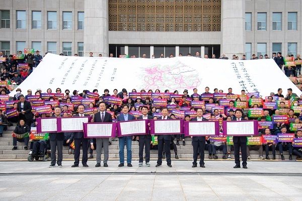 [충북=위키트리 장해순 기자] 제천시 등 강원 충북 7개 시군이 참여하고 있는 동서고속도로 추진협의회는 지난 28일 「제천~삼척 고속도로」 조기 개통을 위한 지역주민의 염원과 열망을 담아 국회에서 결의대회를 가졌다.