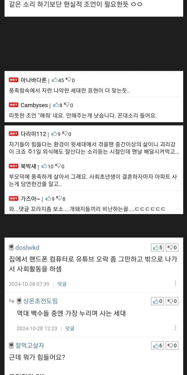 모든 세대는 자기 세대의 짐을 가지고 있고, 그 세대만의 고충이 있으니 숫자질만 하면서 세대갈등 부추기는 짓은