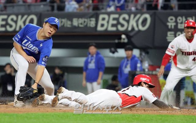 하지만 5회 결정적인 순간 불필요한 실점을 내주면서 고개를 숙였다. 최형우의 솔로 홈런으로 2점 차까지 쫓긴 삼성은 볼넷 3개로 2사 만루를 자초했다. 이후 김도영을 볼넷으로 내주면서 밀어내기 점수를 허용했는데, 이때 김윤수의 떨어지는 슬라이더를 포수 이병헌이 막아내지 못하면서 폭투가 됐다. 그 사이 2루주자 박찬호가 내달려 홈까지 들어오면서 5-5 동점을 만들었다.