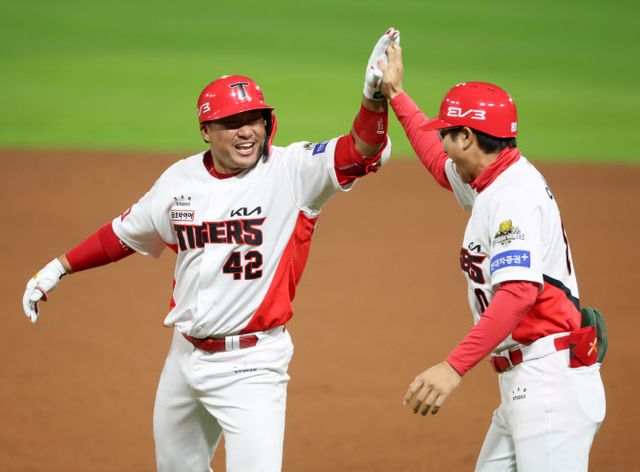 최형우의 홈런으로 1점 차를 만든 KIA는 1사 후 김태군, 이창진이 연속 볼넷을 얻었다. 다음 타자 박찬호는 유격수 땅볼로 물러났지만 2사 1, 3루서 김선빈, 김도영이 다시 연속 볼넷을 얻어 밀어내기로 5-5 동점을 만들었다.