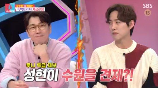 이날 서장훈은 백성현에게 "장수원 씨를 견제한다던데 무슨 말이냐"고 물었고, 이를 들은 김구라는 "장수원은 아주 미약한 존재야. 무슨 견제를 해. 그럴 필요 없어"라고 돌직구를 날렸다.