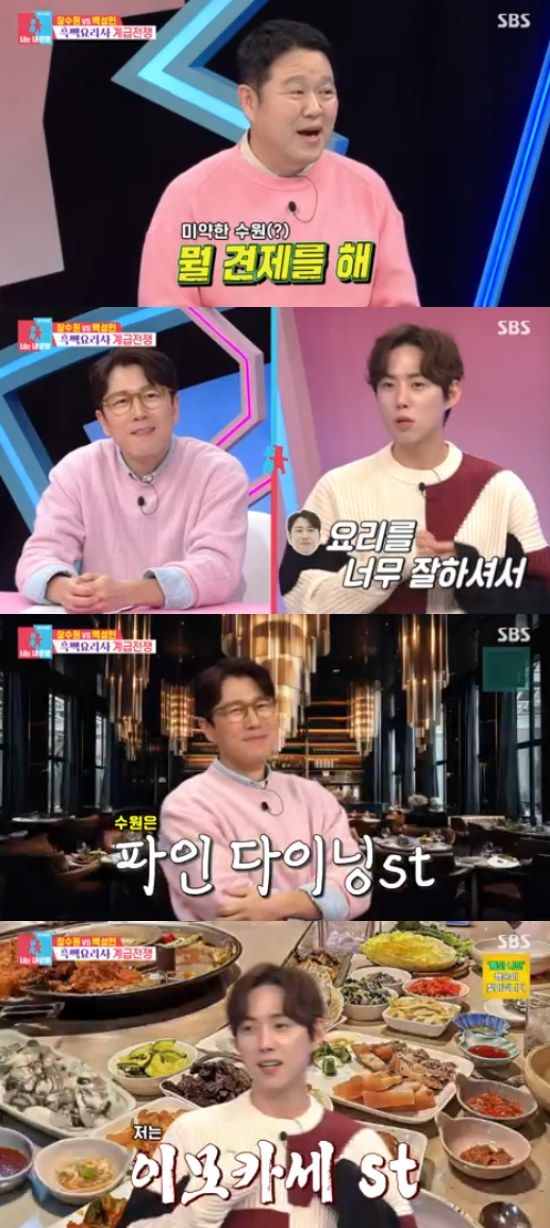김숙은 두 사람에 자신 있는 요이를 물었고, 장수원은 "최근에 육회파스타를 해줬는데, 맛있게 잘 먹더라"고 말했다. 백성현은 "저는 일단 수육은 기본적으로 잘한다. 그리고 자신있는 요리는 묵은지 등갈비찜"이라고 말해 눈길을 끌었다.