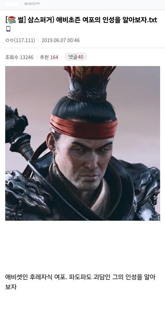 삼스퍼거)애.비.초.즌 여포의 인성질을 알아보자⋯