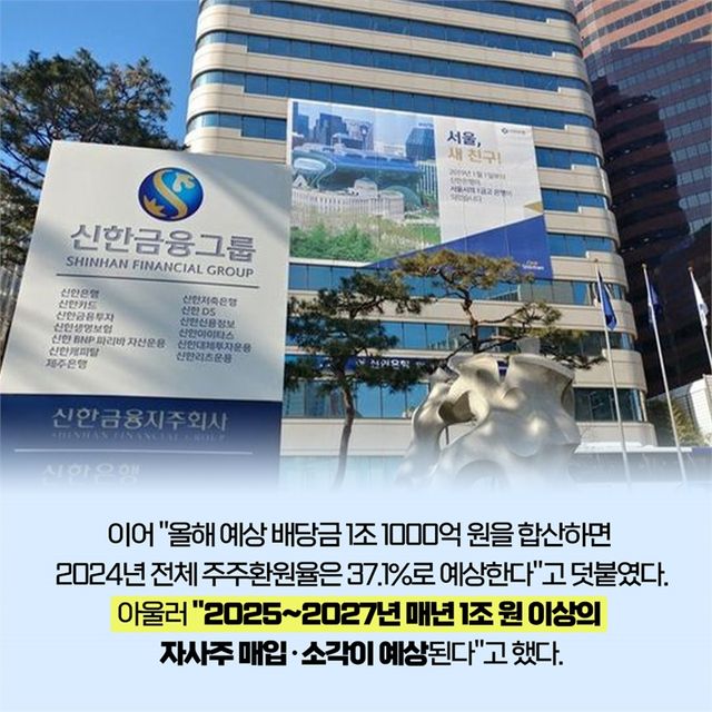 #카드뉴스 #뉴스레터 #뉴스 #경제 #신문 #주주환원 #신한지주 #신한은행 #진옥동회장 #이익증가율 #자사주 #매입 #주주