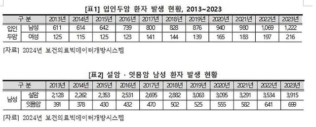 입인두암, 설암, 잇몸암 환자 발생 현황. / 뉴스1=박희승 의원실 제공