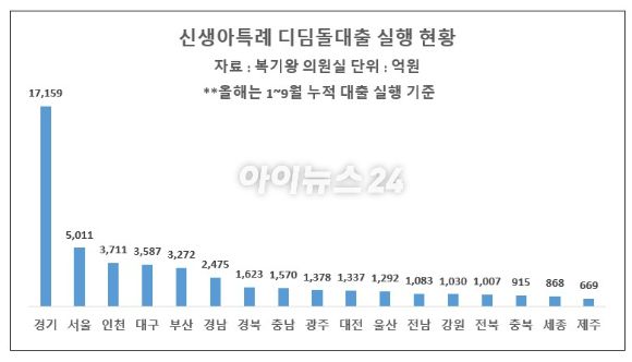 그런데 규모로 보면 서울보다 디딤돌대출 실행 실적이 많은 지역도 적지 않다. 경북은 지난해 대비 104.9% 증가한 1조2158억원이 실행돼 서울보다 많았다. 경남과 대구도 같은 기간 85.2%, 53.2% 늘어난 1조6039억원, 1조6427억원이 실행됐다.