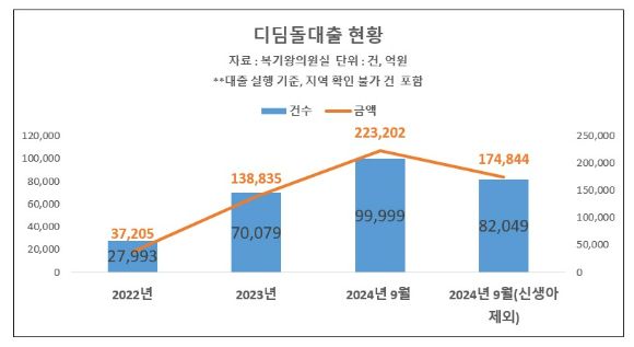 29일 주택도시보증공사(HUG)가 국정감사에 제출한 자료를 아이뉴스24가 분석한 결과에 따르면, 올해 들어 9월까지 대출 실행액(신규 취급액) 기준 디딤돌대출은 총 22조3202억원(9만9999건)으로 지난해 13조8835억원(7만79건)보다 60.8% 증가했다. 올들어 3분기 만에 이미 지난해 전체 실적을 크게 뛰어넘은 것이다.