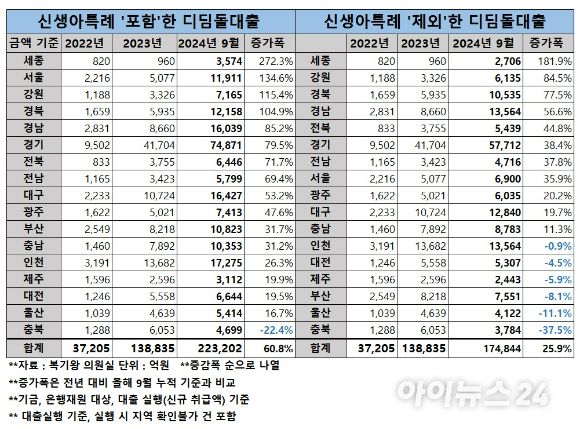 특히 신생아특례 디딤돌대출을 빼고 디딤돌대출 실행규모를 보면 수도권과 지방의 증가 폭 차이가 크게 줄어든다.