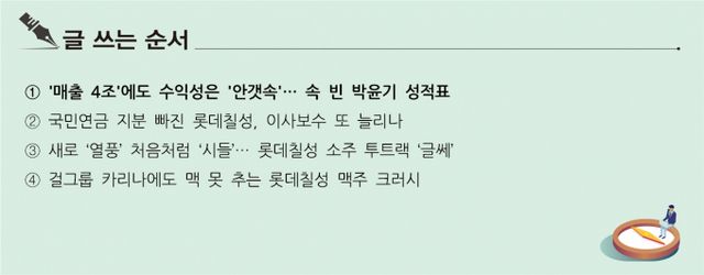 롯데칠성은 롯데 유통군에서 롯데웰푸드와 함께 좋은 성적을 낸 곳 중 하나다. 다만 매출은 증가하는데 영업이익은 뒷걸음질 쳐 아쉽다는 평가를 받는다.