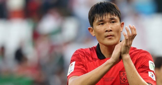 대한민국 축구대표팀 김민재가 지난 1월 20일(현지 시각) 카타르 도하 알투마마 스타디움에서 열린 2023 아시아축구연맹(AFC) 카타르 아시안컵 조별리그 E조 조별리그 2차전 요르단과 대한민국의 경기에서 2-2 무승부를 기록한 후 관중석을 향해 인사하고 있다. / 뉴스1