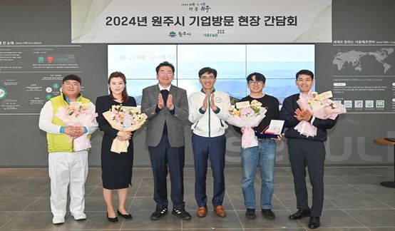 이날 간담회에서 원강수 시장은 원주시 수출 성장의 발판을 마련한 서울에프엔비 직원들에게 표창장을 수여했으며, 경기침체에도 연 10% 이상의 꾸준한 성장세를 이끈 임직원들을 격려했다.