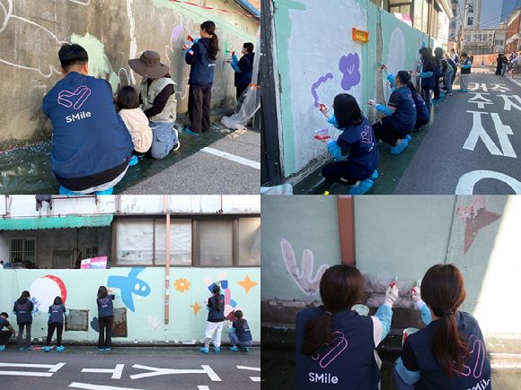 SM은 "성동구 내 미관 취약 지역의 환경 개선과 안전하고 활기찬 환경 조성, 벽화조성을 통한 지역사회와의 소통과 사회적 기여를 위해 임직원들과 가족들이 이번 봉사활동을 진행했다"고 설명했다.