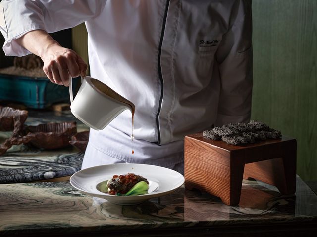 대동 에스테틱 가스트로만의 기술로 조리하는 북경오리는 20년 이상 보완하고 개선하며 다섯 번째 버전에 접어들었다. 22일 된 어린 오리만을 사용해 맛이 부드럽고, 바싹 구운 오리에 칼루가 캐비아를 곁들이면 향과 식감이 배가된다. 일본 간토 지방에서 공수한 가시 해삼은 중국 북부 스타일로 조리해 파 향을 강하게 입힌 일품요리다. ‘식탁의 보물’이라 불리는 만큼 맛은 물론 기력을 회복하는 데도 탁월하다. 훌륭한 미식과 서빙으로 미쉐린 1스타를 유지 중이다.