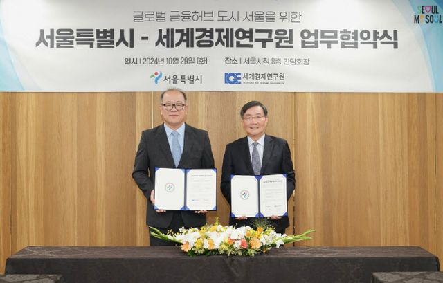 시는 이번 업무협약을 계기로 그간 국제금융 분야에서 명망과 신뢰성을 쌓아온 세계경제연구원과 서울시가 지속적으로 협력해 글로벌 금융허브로서 서울의 브랜드를 더욱 공고히 하는 한편, 글로벌 톱5 금융도시로 나아가기 위한 다양한 로드맵과 전략을 논의해 향후 정책에 반영해 나갈 예정이다.