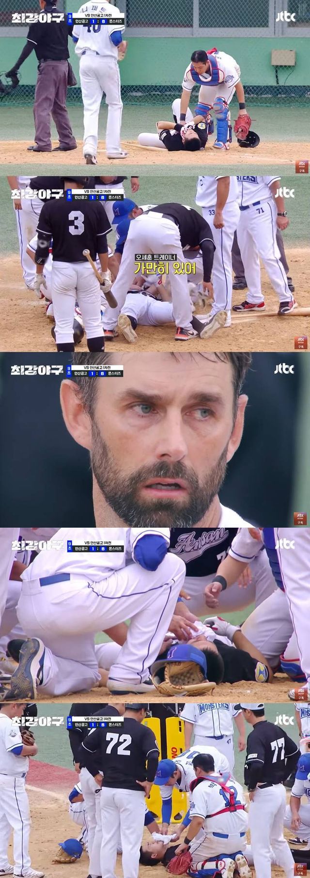 JTBC '최강야구'에서 아마추어 야구선수가 헤드샷을 맞고 큰 부상을 당하는 사고가 났다.