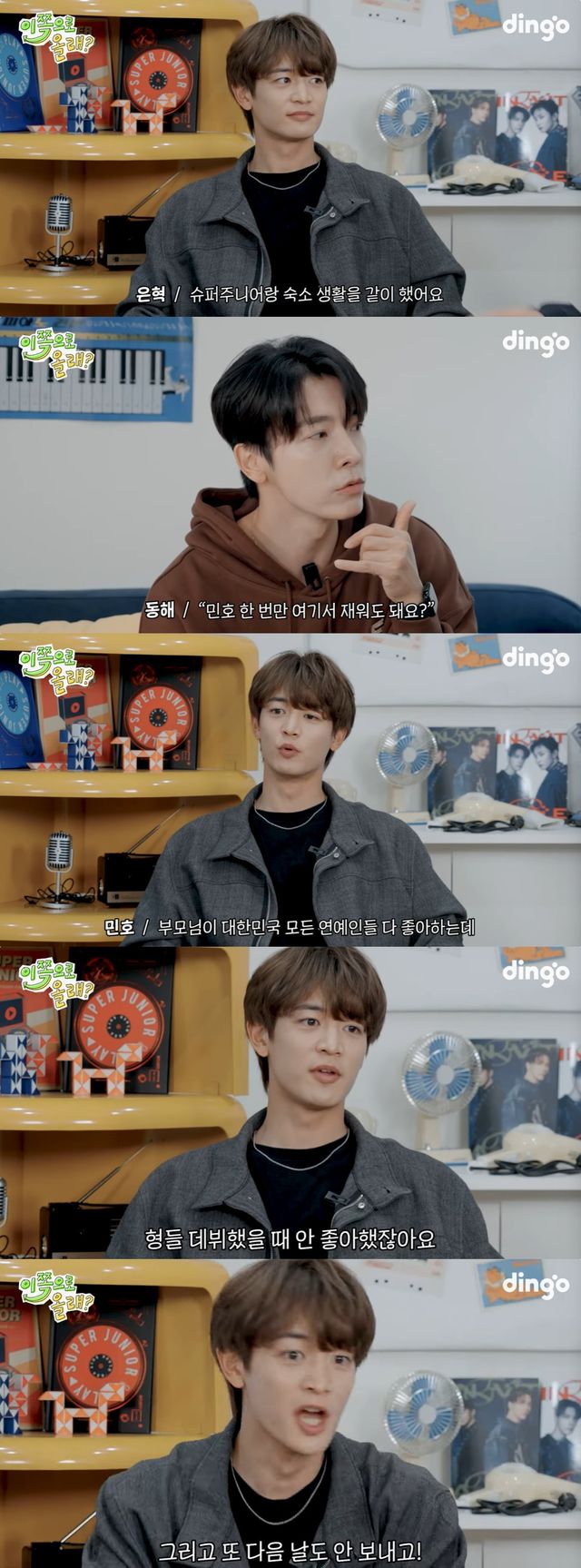 은혁은 "민호가 숙소 생활 같이 해야하는데 같이 할 사람이 없어서 우리랑 같이했다. 슈퍼주니어랑 같이 했다"고 과거를 이야기했다.