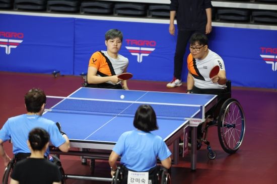 파리 패럴림픽에서 세계 1위를 꺾고 패럴림픽 5번째 정상에 오른 탁구 김영건(40·광주)도 박상은(57·광주)과 출전한 혼합 복식 체급 총합10 경기 8강에서 경북팀 김인수(54), 신미경(57)조에 게임 스코어 0-3으로 패했다.