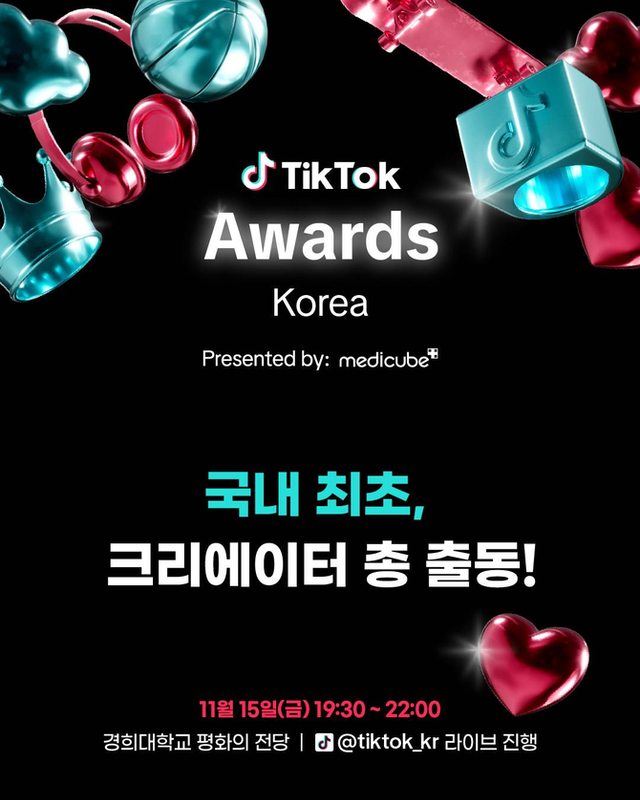 글로벌 숏폼 동영상 플랫폼 틱톡(TikTok)이 오는 11월15일 국내 첫 틱톡 어워즈를 서울 경희대학교 평화의 전당에서 개최한다고 29일 밝혔다. ⓒ 틱톡코리아