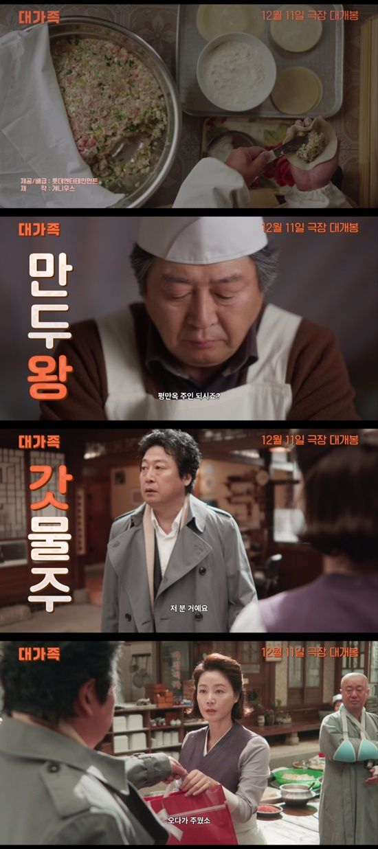 '대가족'은 스님이 된 아들(이승기 분) 때문에 대가 끊긴 만두 맛집 평만옥 사장(김윤석)에게 세상 본 적 없던 귀여운 손주들이 찾아오면서 생각지도 못한 기막힌 동거 생활을 하게 되는 이야기를 담은 영화다.