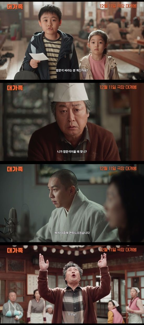 (엑스포츠뉴스 김유진 기자) 양우석 감독의 스크린 컴백작 '대가족'이 12월 11일 개봉을 확정 짓고 티저 포스터와 티저 예고편을 공개했다.