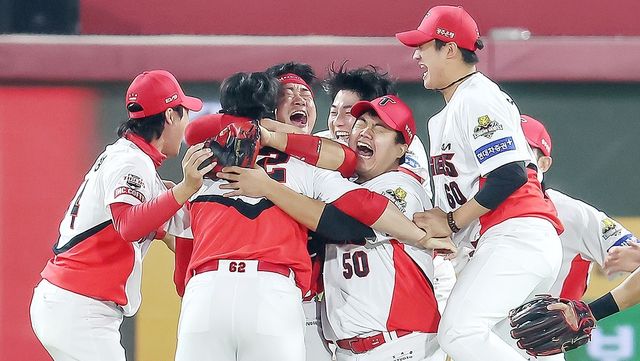 2024 한국시리즈 통합 우승을 차지한 KIA 선수들이 기뻐하고 있다. / 뉴스1