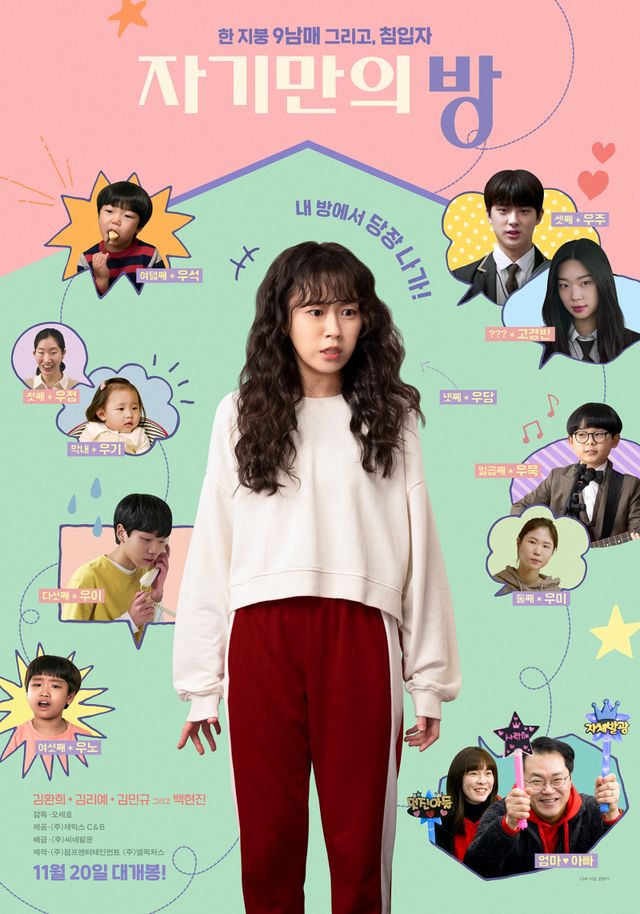 29일 배급사 씨네필운은 영화 ‘자기만의 방’의 11월 개봉을 확정하며 티저 포스터를 공개했다. ‘자기만의 방’은 9남매 가족 속에서 내 방을 지키기 위해 고군분투하던 10대 소녀 우담(김환희)이 지독한 원수 경빈(김리예)과의 한방 동거를 시작하면서 벌어지는 이야기를 그린 유쾌한 성장 드라마. 17년 인생 처음으로 혼자 만의 방이 생긴 우담이 자신의 방을 사수하기 위한 애절한 노력과 어쩔 수 없이 방을 나눠쓰게 된 경빈과의 좌충우돌 동거를 하며 벌어지는 이야기를 다룬 영화는 두 소녀의 성장, 훈훈한 가족애를 그려내며 관객들에게 유쾌한 웃음과 따뜻한 감동을 선사할 예정이다.