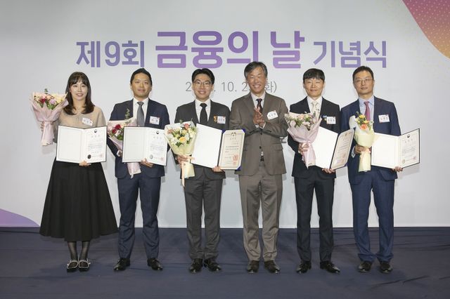 수상자는 혁신금융부문 △대통령 표창 데이터서비스팀 강은창님, 포용금융부문 △국무총리 표창 카드팀 정동윤님, 혁신금융부문 △금융위원장 표창 금융사기대응팀 허철님 △금융위원장 표창 담보대출팀 김영관님, 박성원님 등이다.