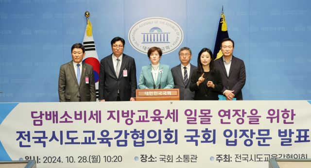 이에 전국시도교육감협의회를 대표해 강은희 대구광역시교육감과 정 교육감, 임태희 경기도교육감, 도성훈 인천시교육감, 김광수 제주도교육감 등은 전날 국회에서 기자회견을 열고 "담배소비세분 지방교육세가 일몰되면 시도교육청 전입금은 연간 1조6000억 원 감소한다"며 "교육 여건 악화로 학생 교육의 질이 떨어질 것"이라고 주장했다.