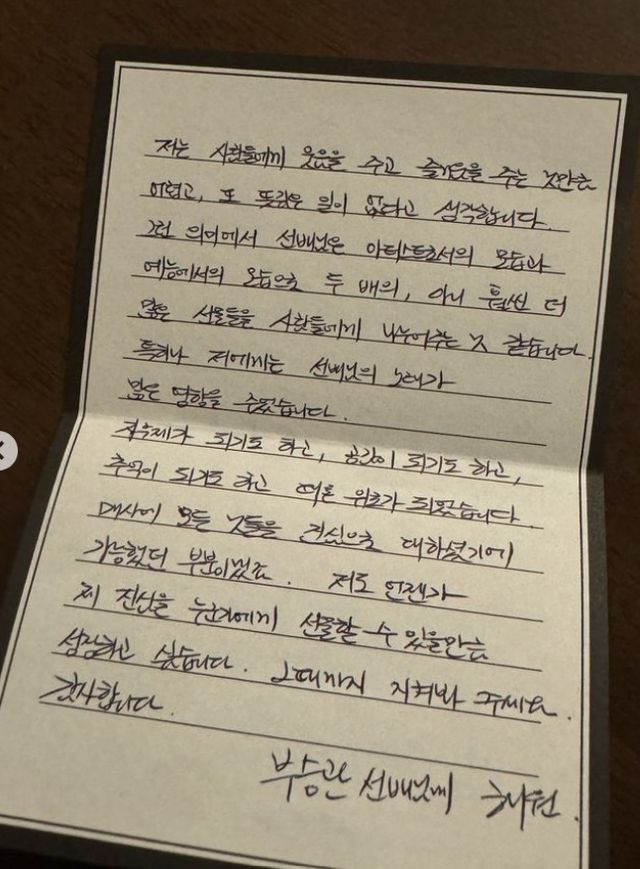 이와 함께 후배인 엔믹스(NMIXX) 해원에게 받은 편지도 공개했다.