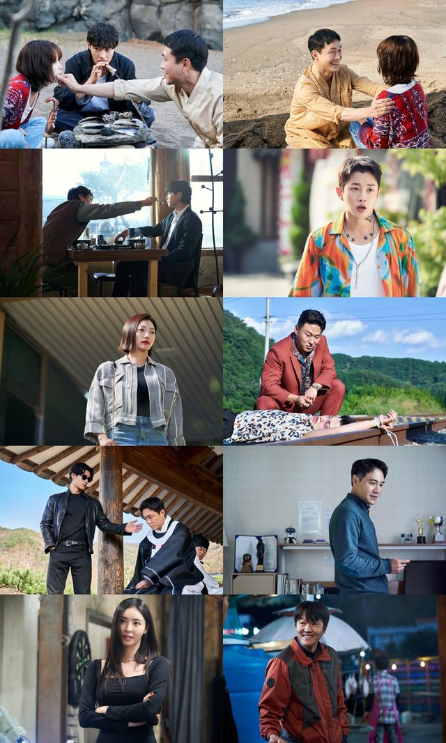 이번에 공개된 보도스틸은 ‘해조’(우도환)와 ‘재미’(이유미), 그리고 ‘어흥’(오정세)의 어디로 향할지 모르는 여정에서 만난 다양한 인간 군상들을 엿볼 수 있다. 어디에도 정착하지 못하고 흘러가는 대로 살아가던 ‘해조’의 공허한 눈빛은 ‘재미’와 동행을 시작하면서 생기를 찾은 듯 달라져 호기심을 자극한다. 엄격한 예비 시어머니 ‘범호자’(김해숙)에게 차기 종부 교육을 받는 ‘재미’의 모습은 평생 온기를 나눌 가족이 간절했던 ‘재미’가 순애보 신랑 ‘어흥’과의 결혼식 날 갑작스럽게 떠나게된 해조와의 여정에서 무엇을 얻게 될지 궁금해진다.