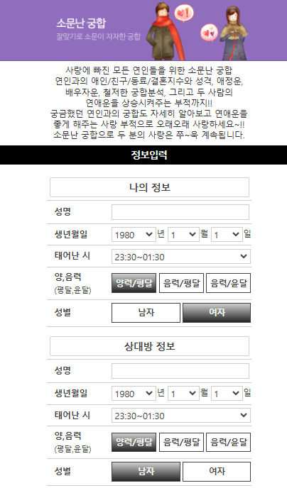 위키사주 소문난 궁합 화면 / 위키사주