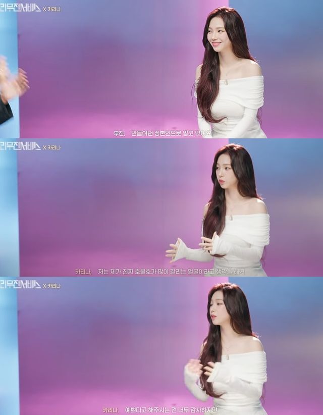 이무진의 질문에 카리나는 "제가 호불호가 진짜 많이 갈리는 얼굴"이라며 "예쁘다고 해주시는 건 감사하지만, 이해가 안 될 때가 많다"며 외모 망언을 쏟아냈다.